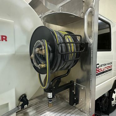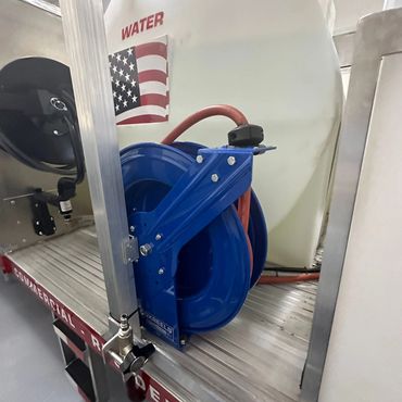 In addition to the pressure washing equipment, we can add accessories such as ladder racks, emergency lights, truck backup alarms, toolboxes, and all types of signs around the truck or trailer.